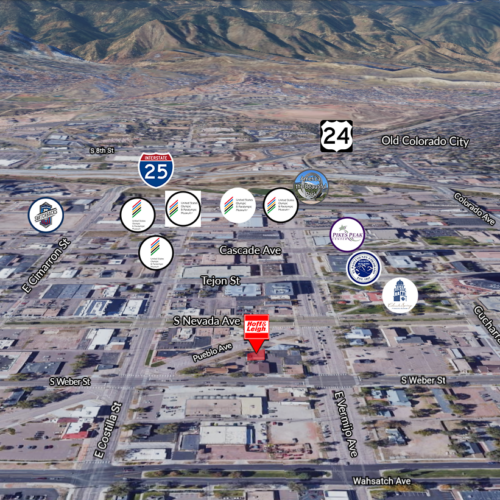 116–118 Pueblo Avenue is a charming mid-century modern retail property located in the heart of downtown Colorado Springs. Previously home to a salon that occupied both suites, the building offers flexibility for a new tenant; the landlord is open to leasing the entire 1,574 RSF or dividing the property back into two suites, with Unit 116 at approximately 899 RSF and Unit 118 at approximately 675 RSF. The property has been tastefully updated and features stained concrete floors, expansive storefront windows, and wood ceilings that create a warm and inviting atmosphere. Tenants will also enjoy a private, fully fenced back patio that enhances the indoor and outdoor experience.