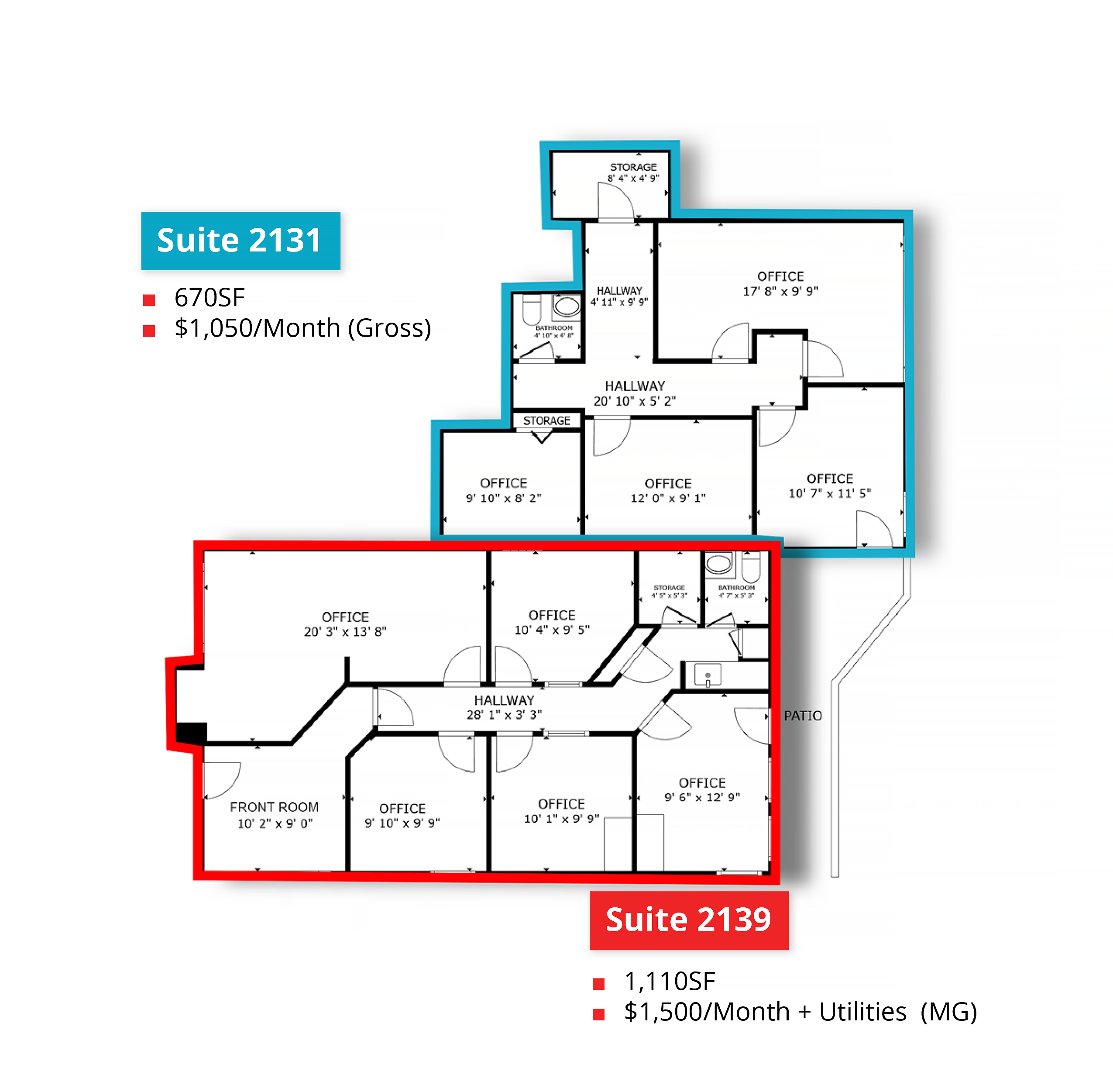 • 1,110 SF | $1,500/Month + Utilities (MG)