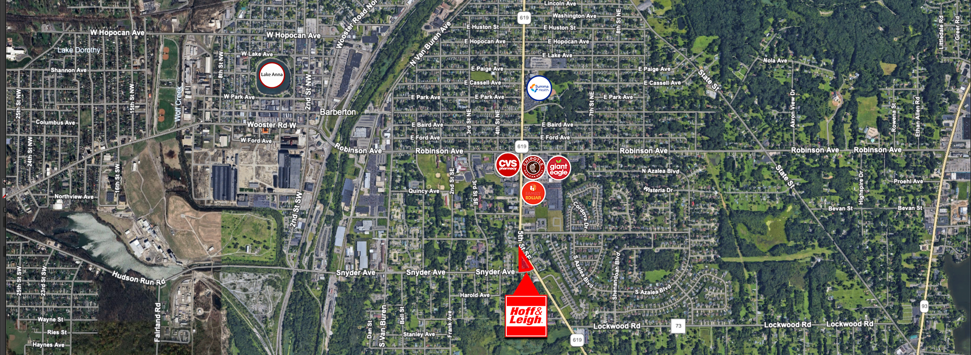 Busy retail plaza located on 5th Street SE (SR 619) in Barberton. We have one large 3,000 SF space available for lease in the front of the building with great visibility, signage at the street and on the facade, as well as plenty of parking. We have two 1,000 SF spaces in the back of the building that are contiguous so they can be leased separately or together. There is parking in the rear near each door. Please contact Ed Jesson at 330-760-4494 to see these spaces.