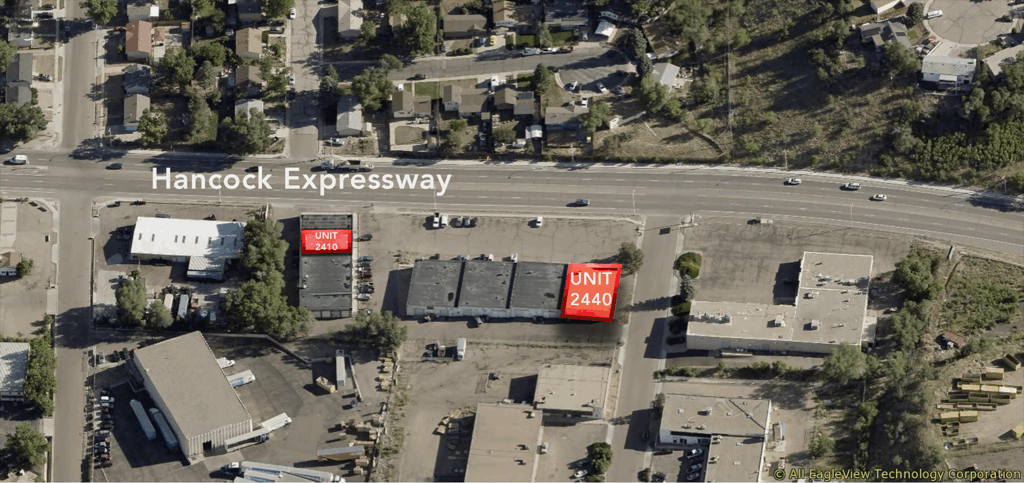 This spacious warehouse, with a high clear height (12.5 feet), 3 offices and 2 restrooms is available for lease in Southeast Colorado Springs. Easy access to US-24. Hard-to-find uses allowed in the space, including automotive. The space includes a store front, with high visibility from Hancock Expressway.