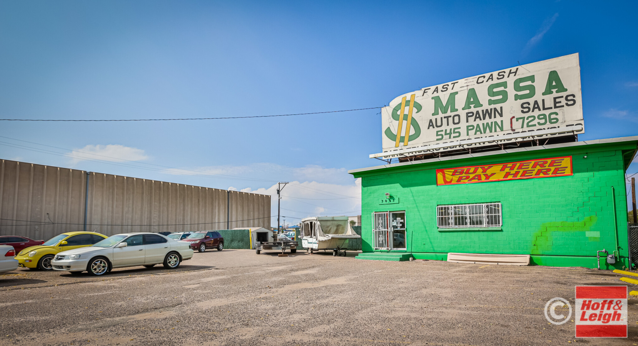 3.47 acres of prime land with high visibility to I-25! The property includes a 9,504 SF warehouse and a 4,160 SF retail building with multiple warehouse bays. The warehouse features high ceilings, dock-high and drive-in doors and is fully fenced. The retail building has been used as an auto pawn and has a small retail area with office and warehouse/garage bays. The land is zoned B4 allowing almost all retail, hotel, multi-family, marijuana retail and cultivation, and most other uses. Please call for more information and to schedule a tour.