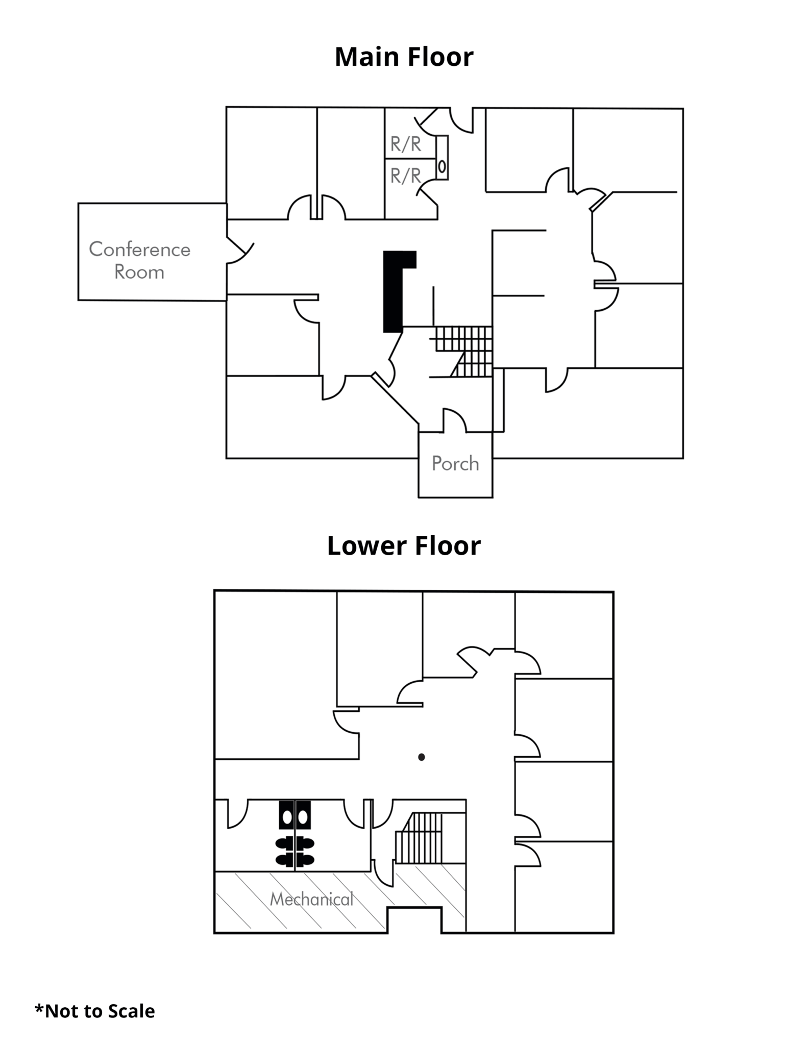 Lower Level / 2,504 SF / offers abundant natural light with multiple windows, meeting/training room and in-suite restrooms