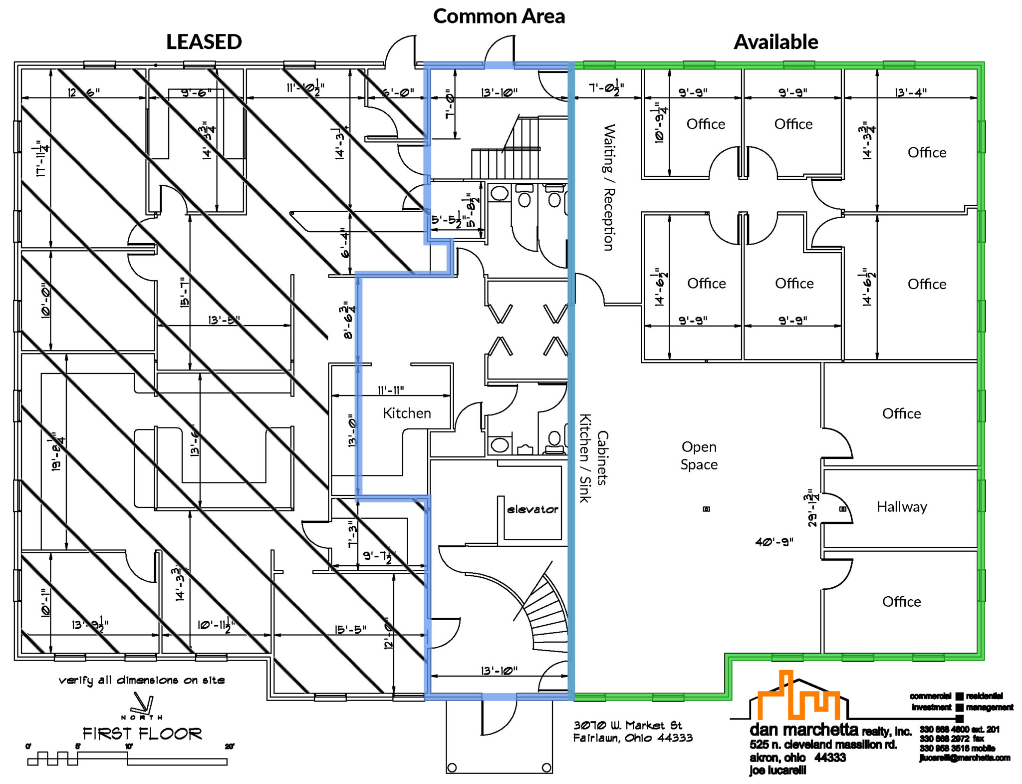 Approximately 1,200 – 3,000 SF remaining on the 1st floor in this attractive, 2-story office building in the city of Fairlawn. Available space consists of private offices, open area with kitchenette and common area full kitchen. Amenities include a monument sign that fronts W. Market Street, an abundance of parking, elevator, common area restrooms on both floors and on-site management. Recent upgrades include new roof, sealed/striped parking lot, exterior lighting, and landscaping. Please contact Jennifer Fernandez or Jeff Davis for a tour.