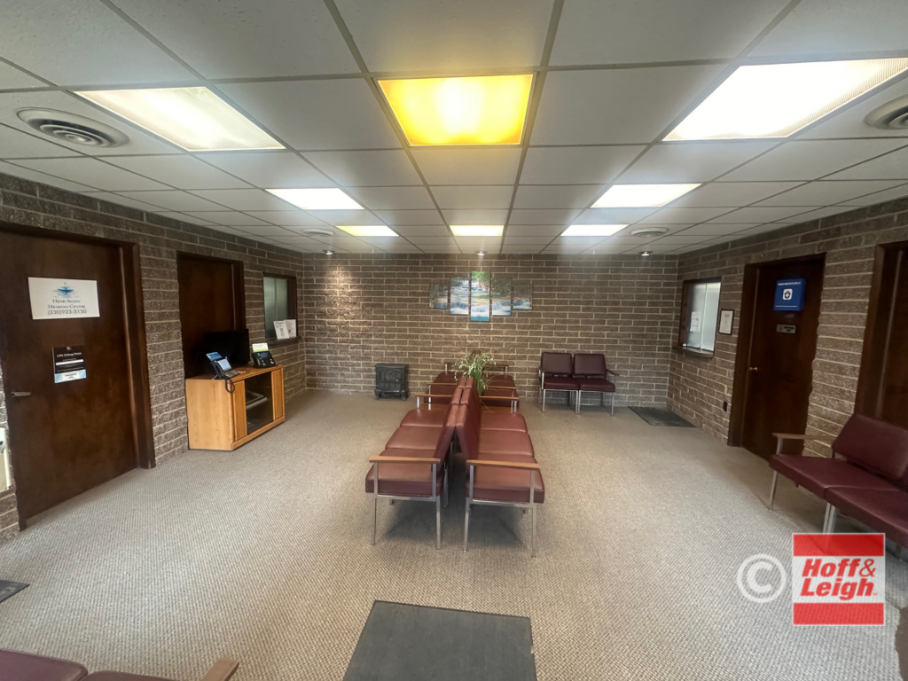 Large office suite available for lease in the heart of Cuyahoga Falls at the signalized corner of Portage Trail and 4th Street. This location offers great visibility and signage capabilities. The 1,800 SF office space has a nice reception area, several offices, a kitchen area, an open area and in-suite restrooms. There is also a common waiting room in the building off of the main entrance. This space works well for many different users including medical offices and general offices.