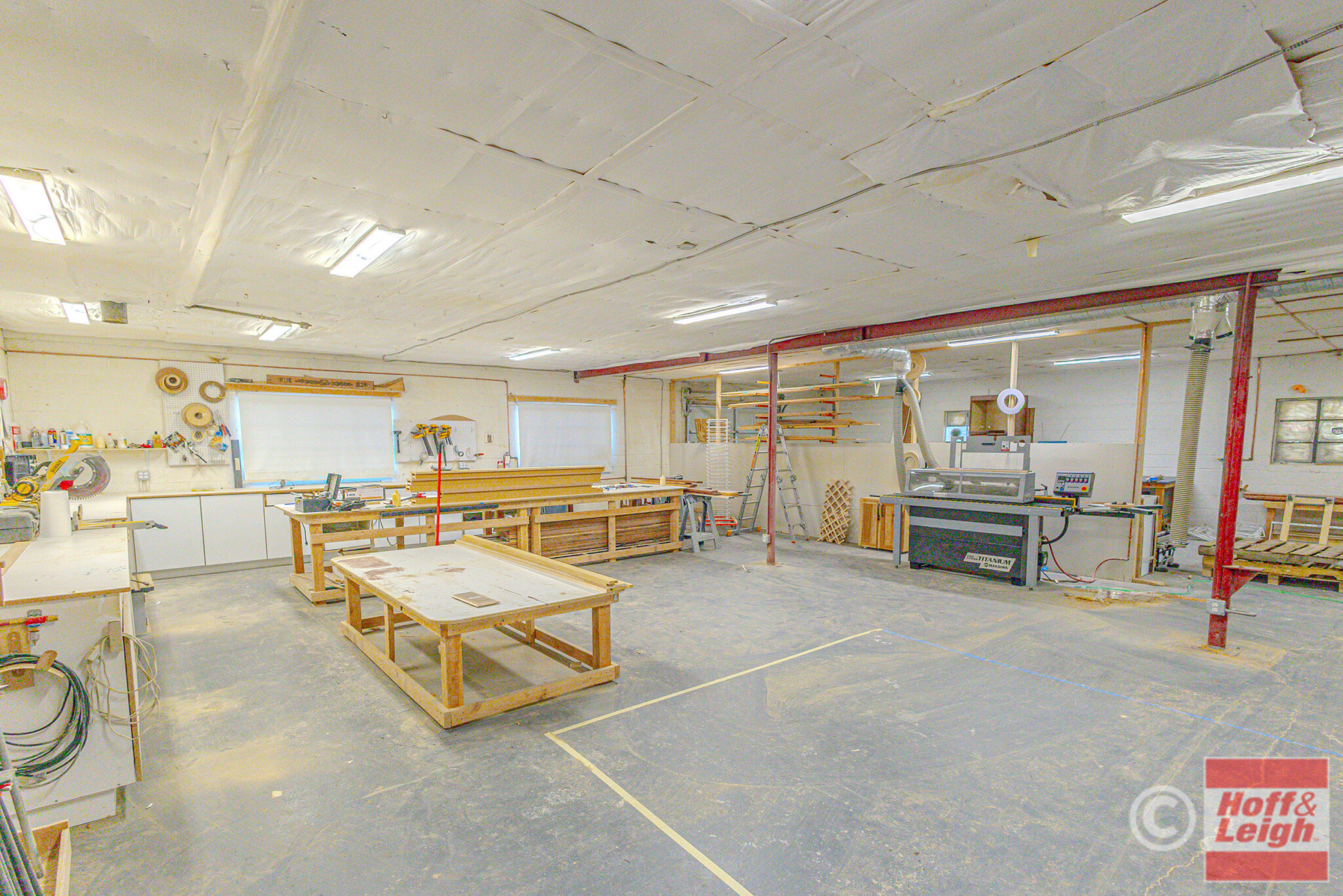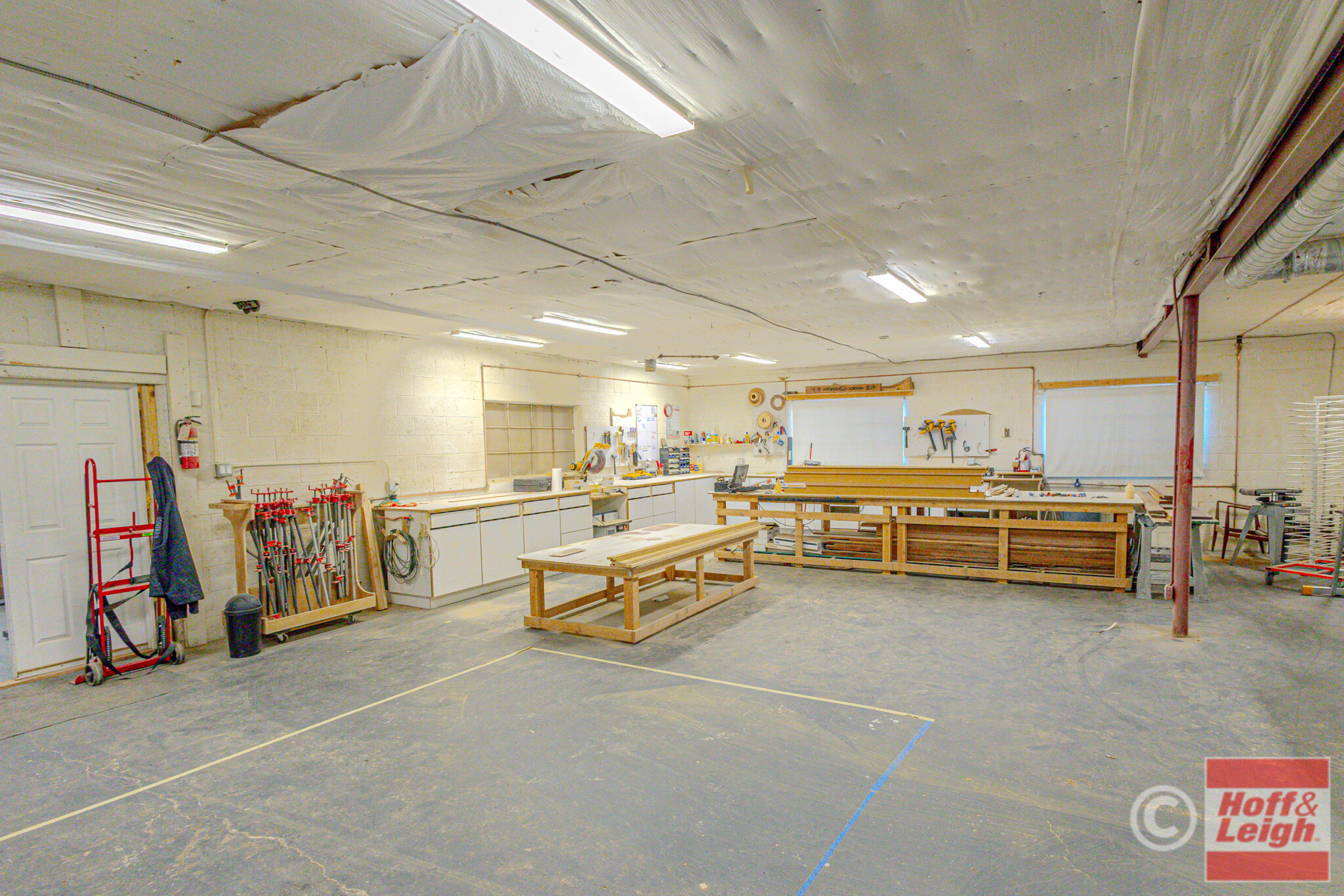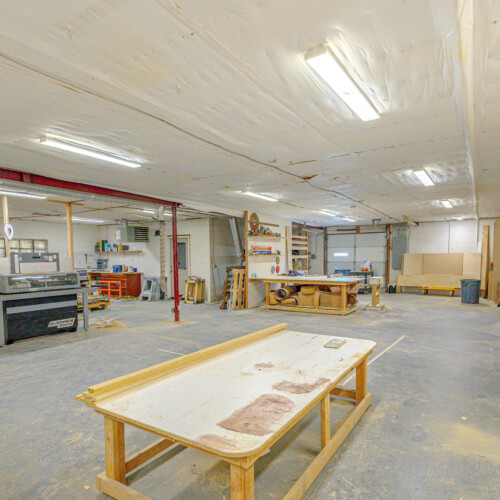 415 Juanita Street offers a well-balanced mix of warehouse/shop space and finished office/showroom in a central Colorado Springs location. The property features an open warehouse layout with multiple work areas, built-in workbenches, and a drive-in overhead door for easy loading and functionality.