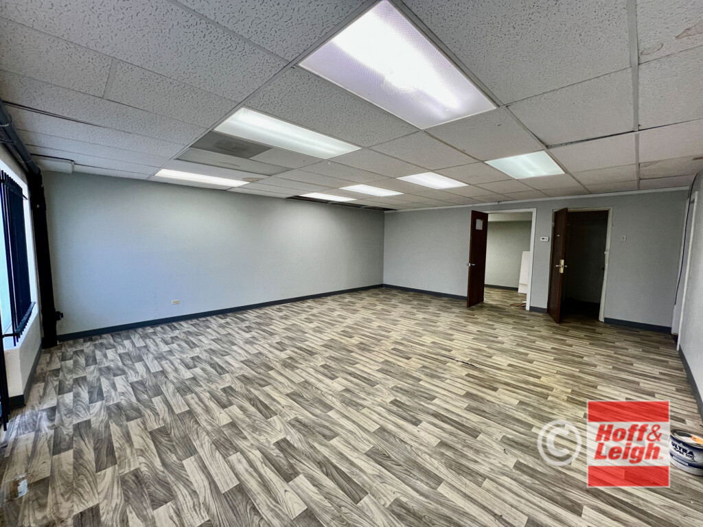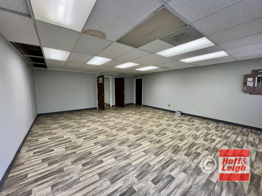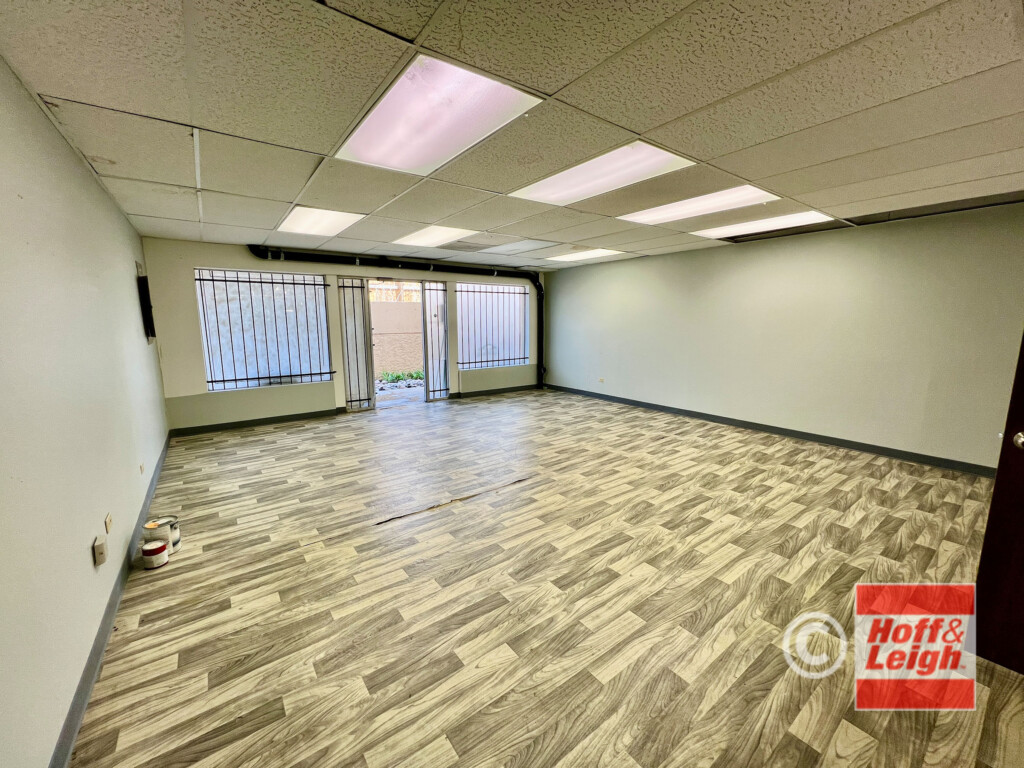 Unit M is a garden-level unit with an open area, 1 private office, and 1 private bathroom.