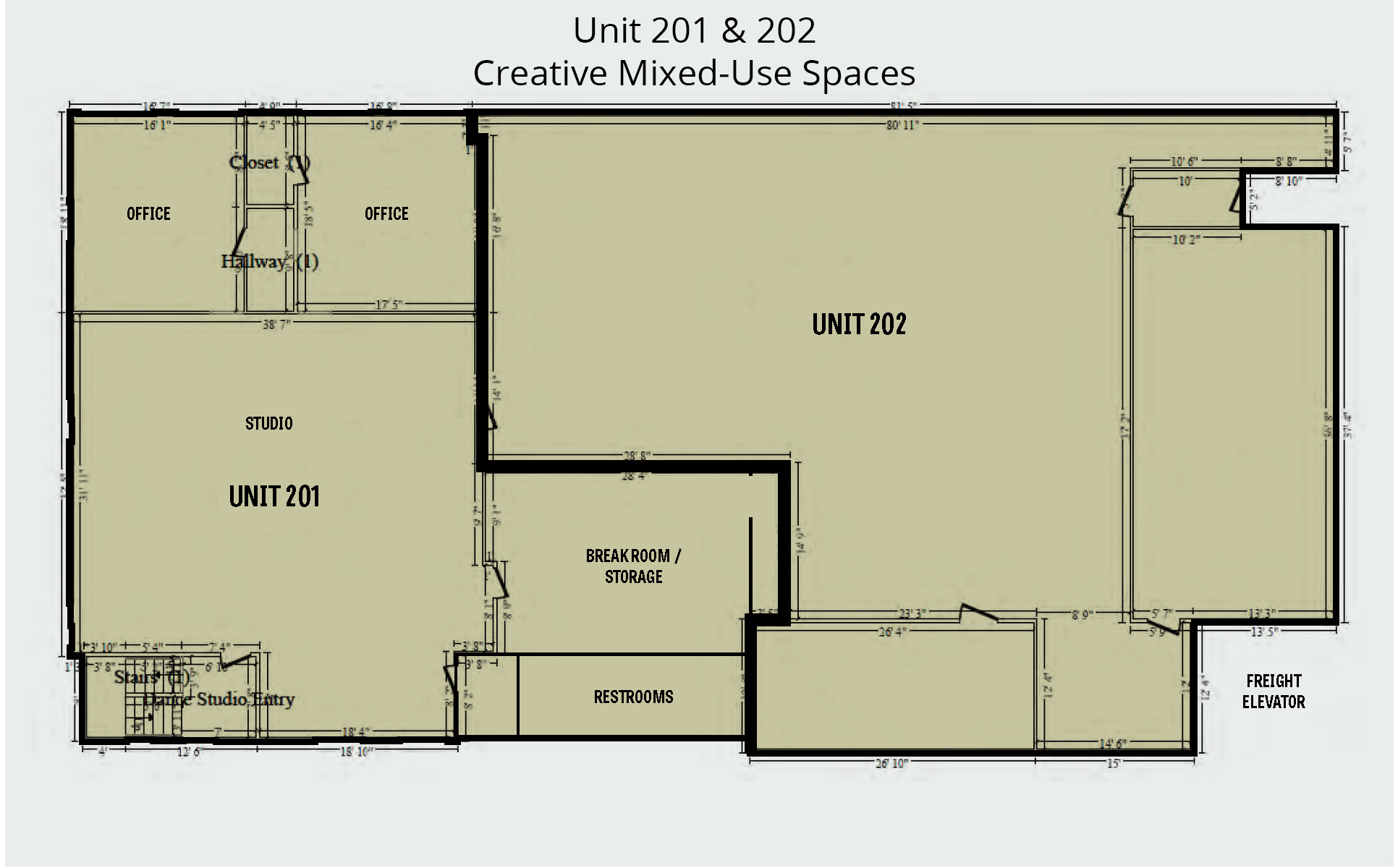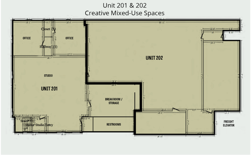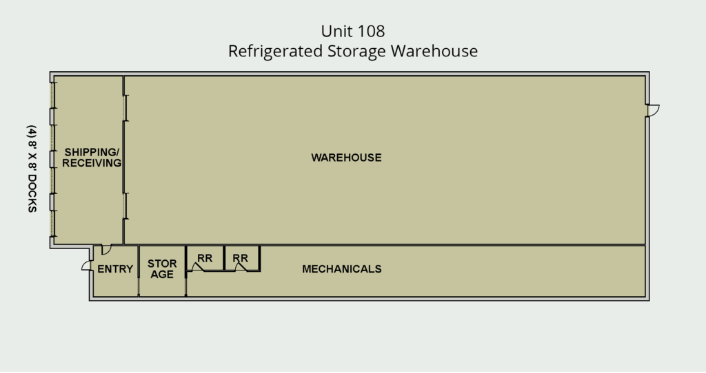 The refrigerated storage warehouse is highly functional, fully-racked, and is a clear span. Suitable for cold or frozen storage and/or distribution. The creative and mixed-use spaces are suitable for a variety of users including: office, retail, studio, wellness, artists, and more. The workshop spaces are suitable for a variety of users including: light assembly/manufacturing, warehousing, storage, auto shop and detailing, and more.